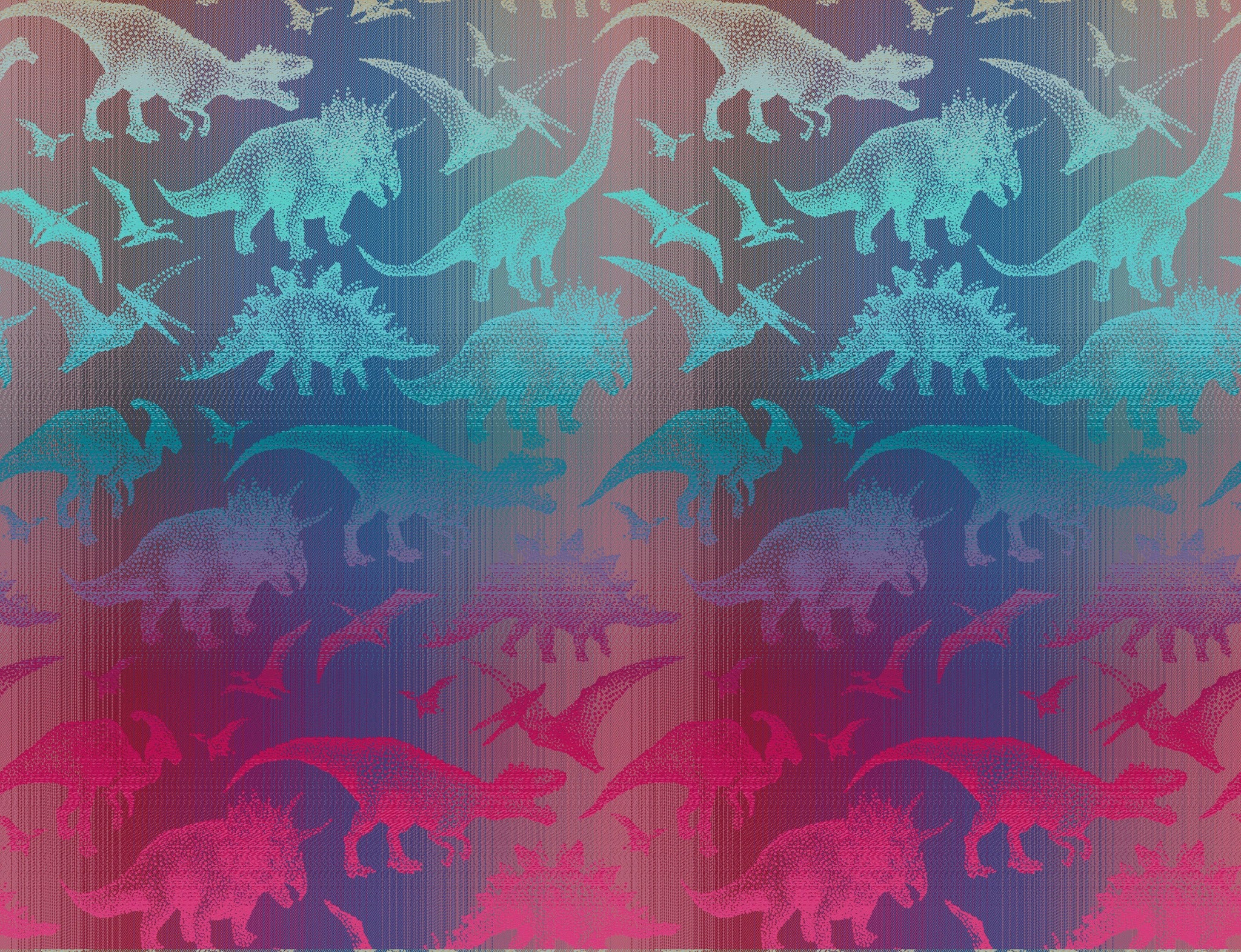 Jurassic Park - Blaze features the popular Blaze colorway of bright blue gradient to bright pink, in both background and in the large realistic-looking dinosaurs! The background gradient moves horizontally and is more muted than the gradient in the motif, which is a vertical and brighter gradient.